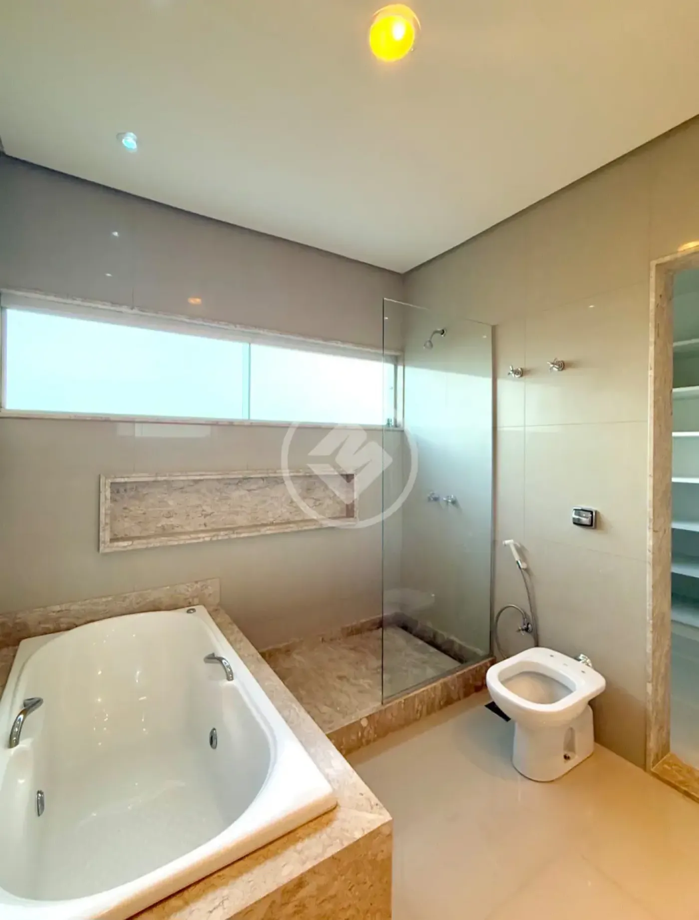 3 suítes com closet (sendo uma com armários), sendo a maior com vista para a mata e banheira de hidromassagem.