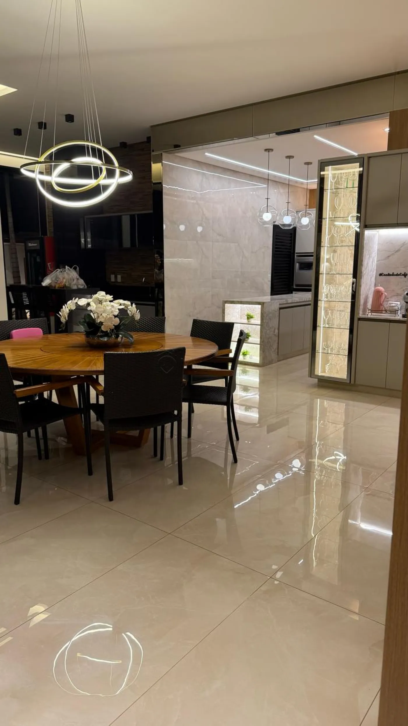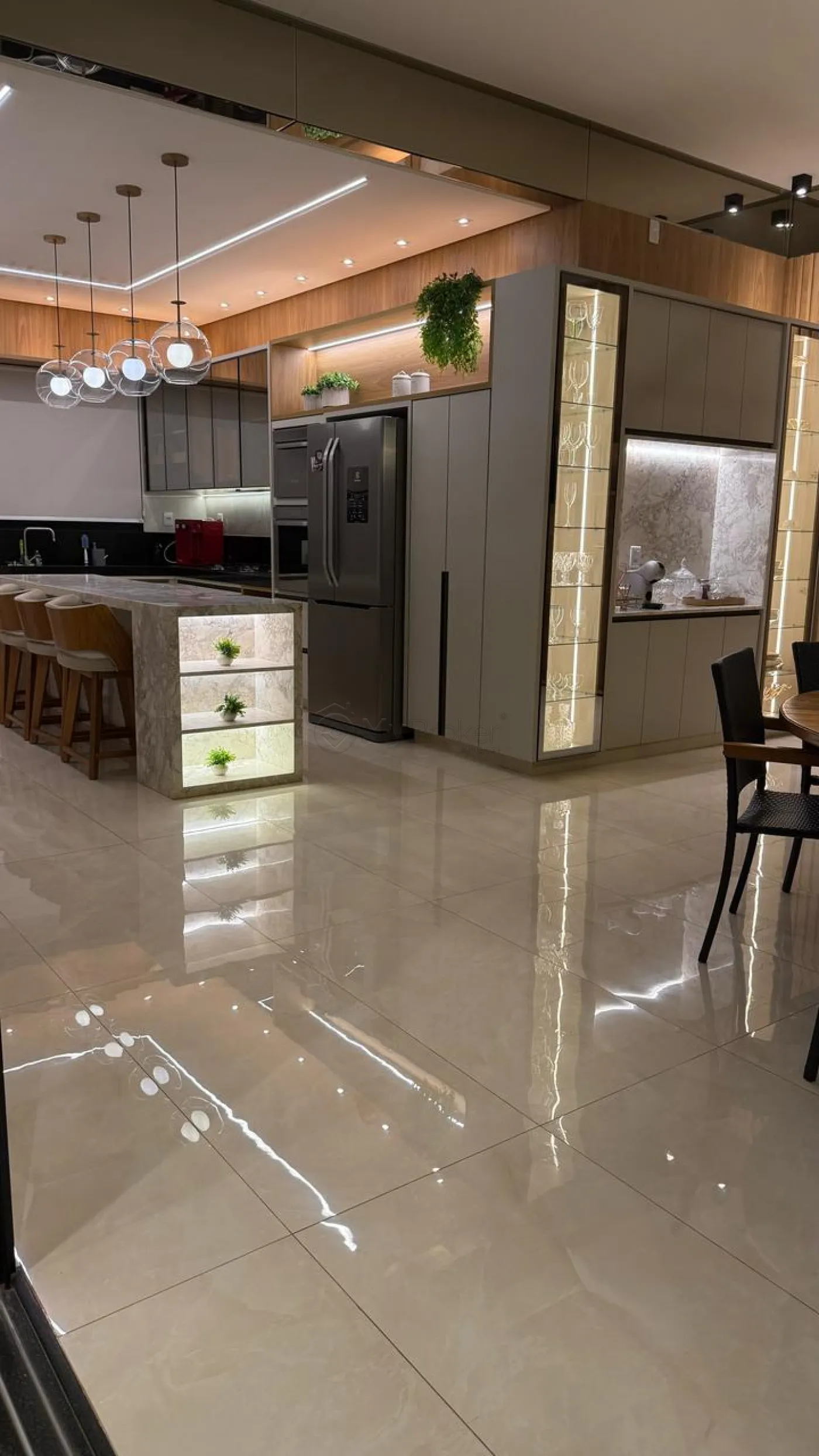 O imóvel conta com sala ampla com pé-direito duplo, proporcionando mais iluminação e sofisticação aos ambientes. A cozinha é espaçosa e bem equipada, ideal para quem valoriza praticidade e conforto no dia a dia.