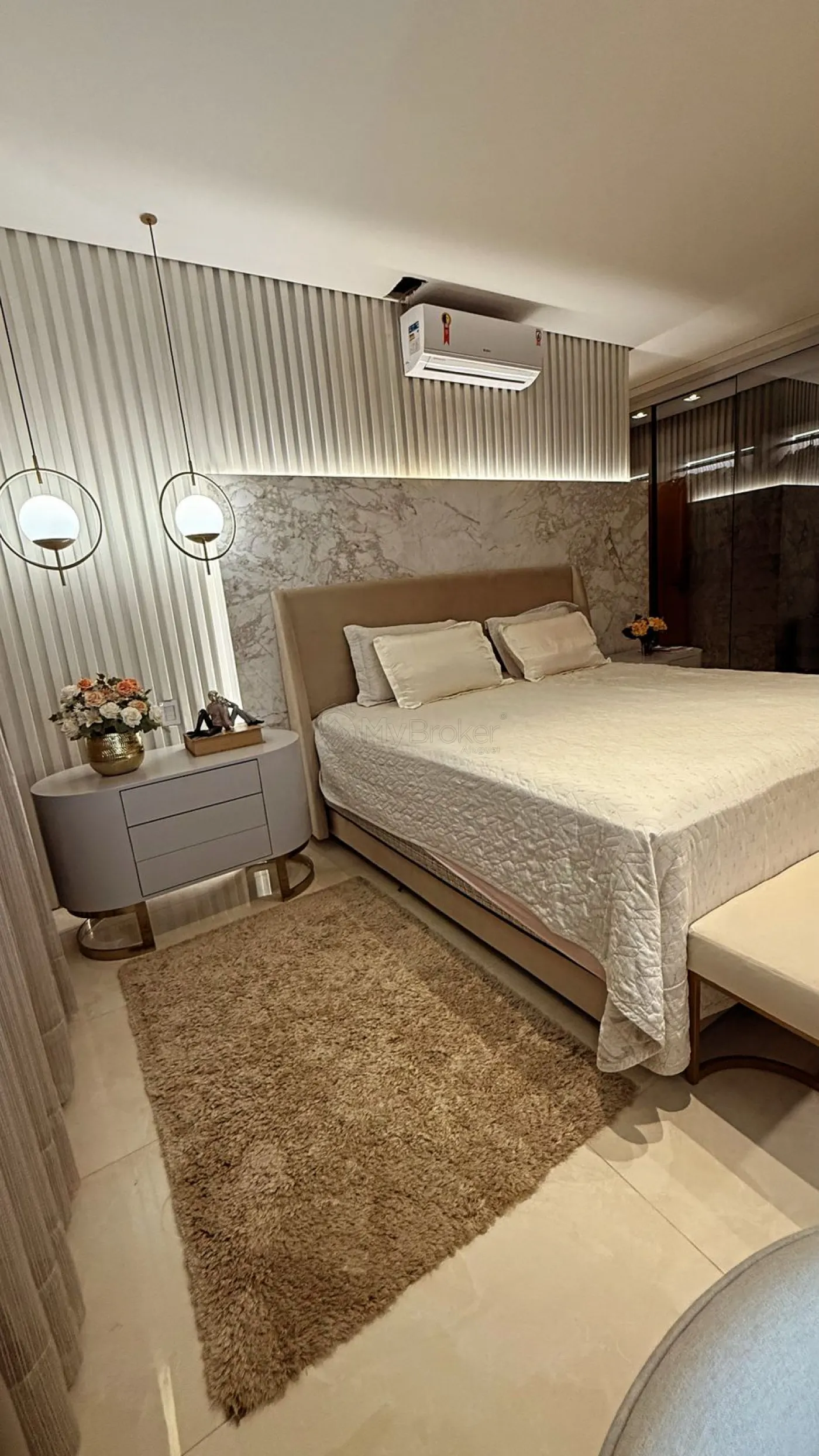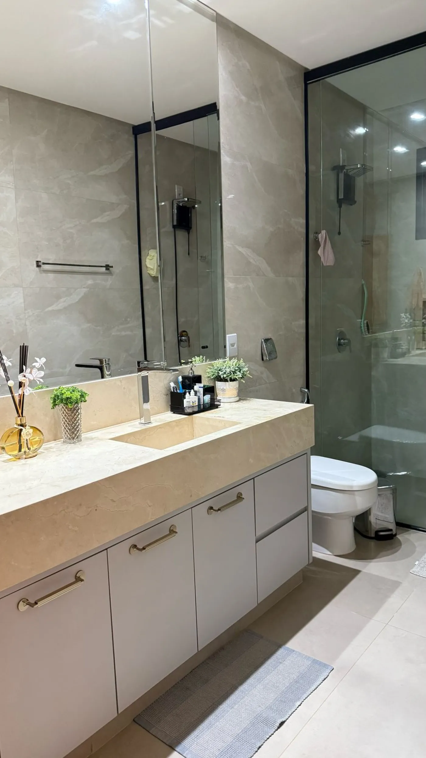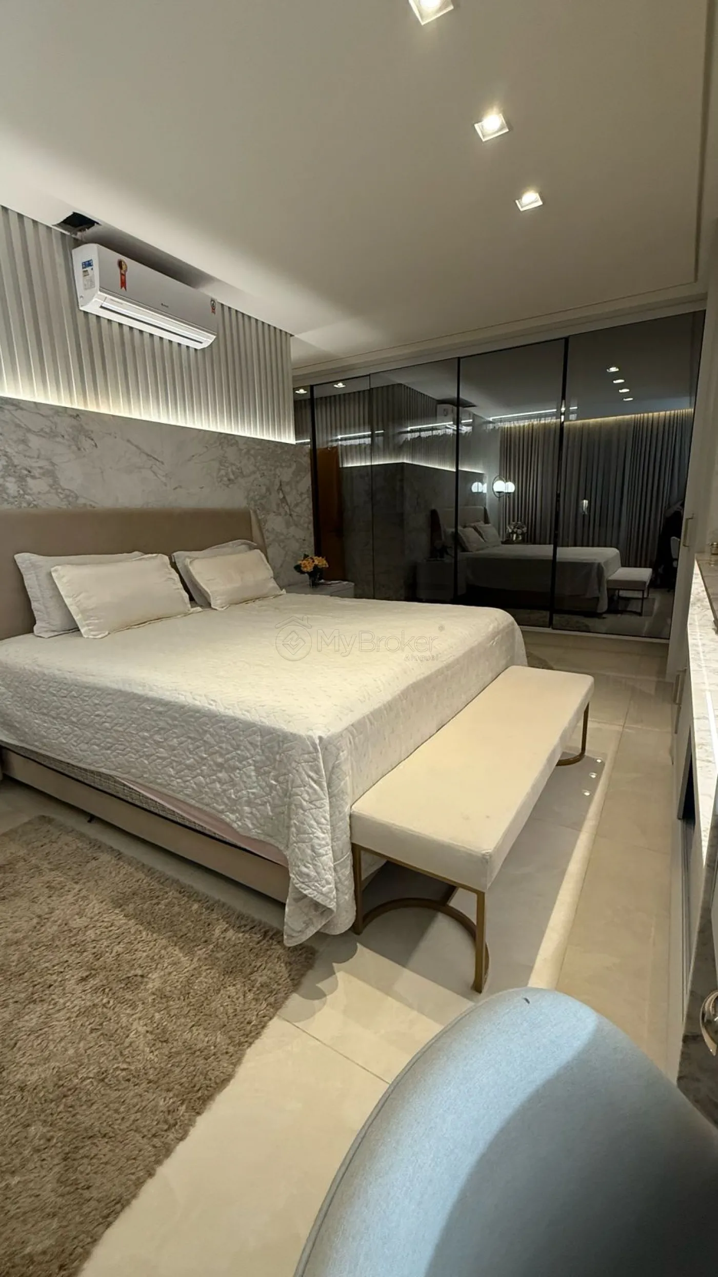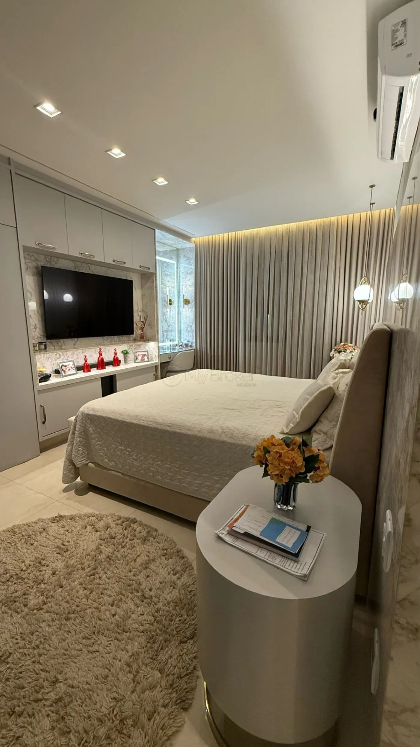 A área íntima possui 4 suítes, sendo uma utilizada como escritório. A casa também dispõe de lavabo, varanda gourmet com churrasqueira, piscina aquecida e poço artesiano. Para maior conforto, o imóvel possui 5 aparelhos de ar-condicionado instalados.