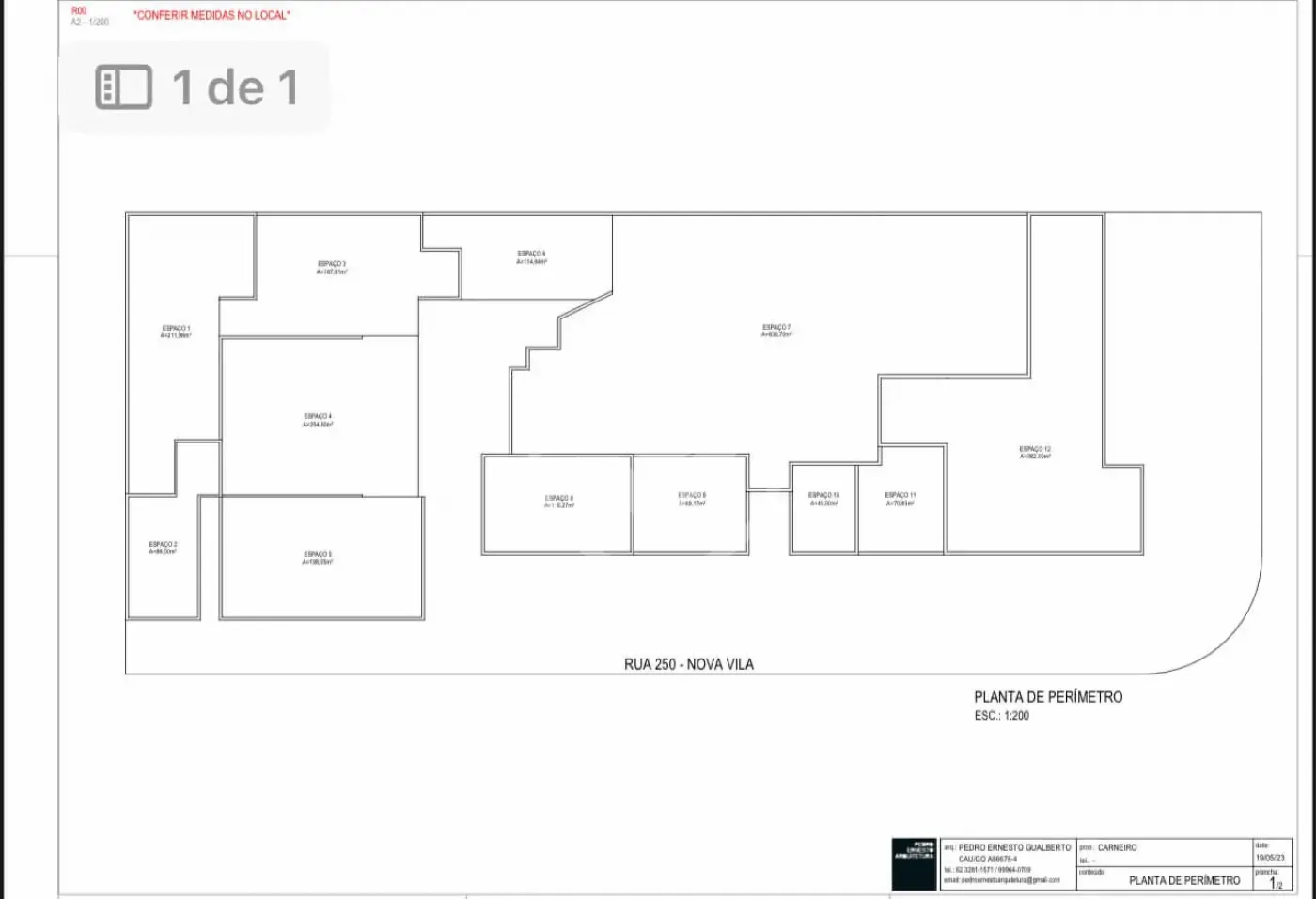 Sala 1: 211,98 m² - R$ 3.391,68
