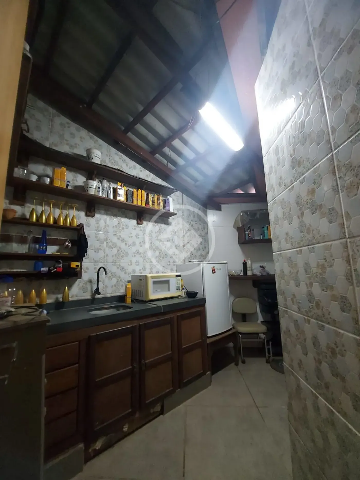 ? Salão amplo, equipado com três pontos de água, ponto de bebedouro e preparado para ar-condicionado.