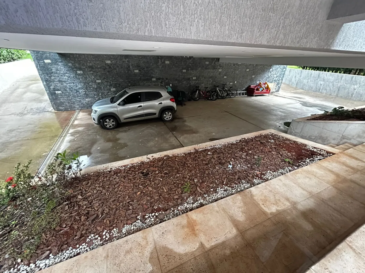 São 2 vagas de garagem no pavimento térreo e 6 vagas no pavimento inferior.