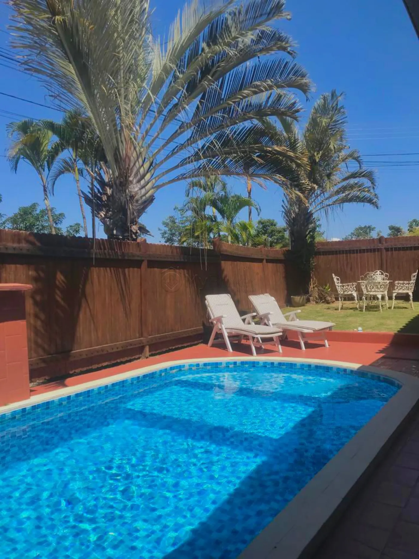 Além disso, a casa possui uma sauna, um lavabo grande que atende a área externa e interna, uma piscina e um banheiro próximo à piscina, ideal para dias quentes e relaxantes em família.